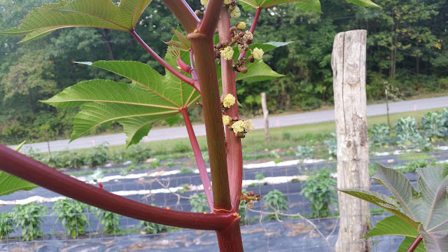Most have blossoms and seed pods on now! They are so pretty. I think I have 3 or 4 different varieties here! I will have to save some seed. No ead moles that I have found, but I did find a dead rat right next to a castor bean plant! So who knows, the beans might be doing their job!